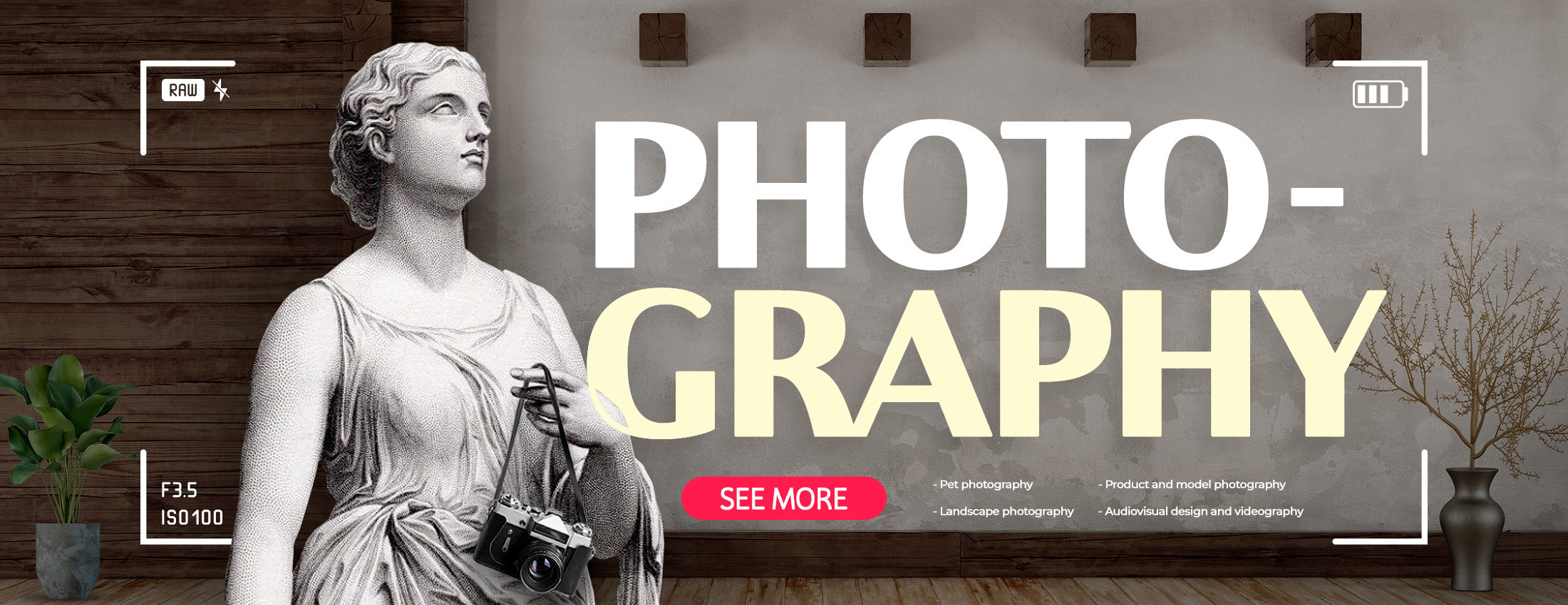 We're here for you or your business to immortalize your most important moments. Pet photography, product and model photography, landscape photography, audiovisual design, and videography.